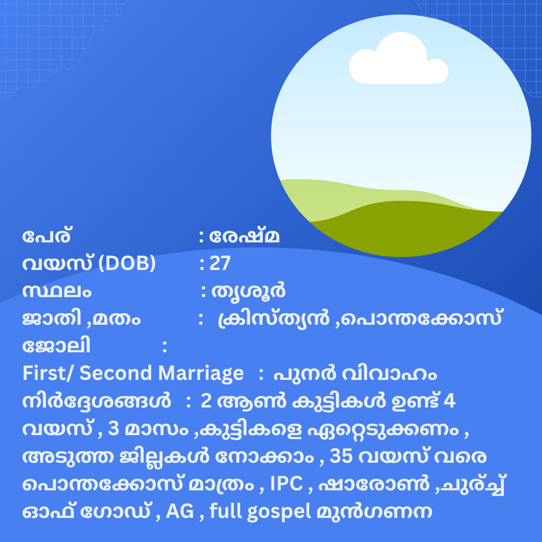 പുനർ വിവാഹം ചെയ്യാൻ താൽപര്യപ്പെടുന്ന നിങ്ങൾക്ക് അനിയോജ്യമായ വരന്മാരെ കണ്ടെത്താം .