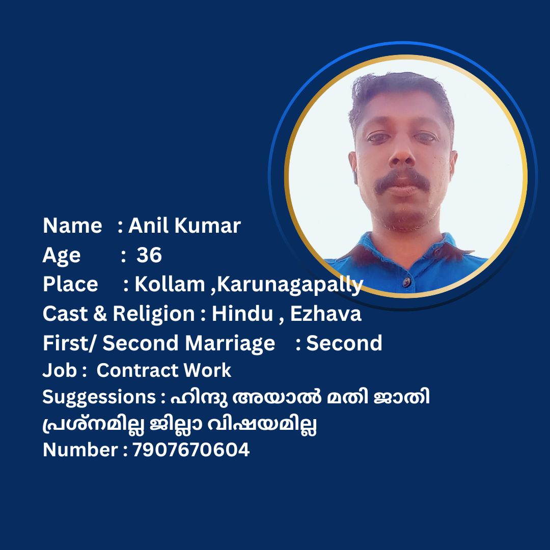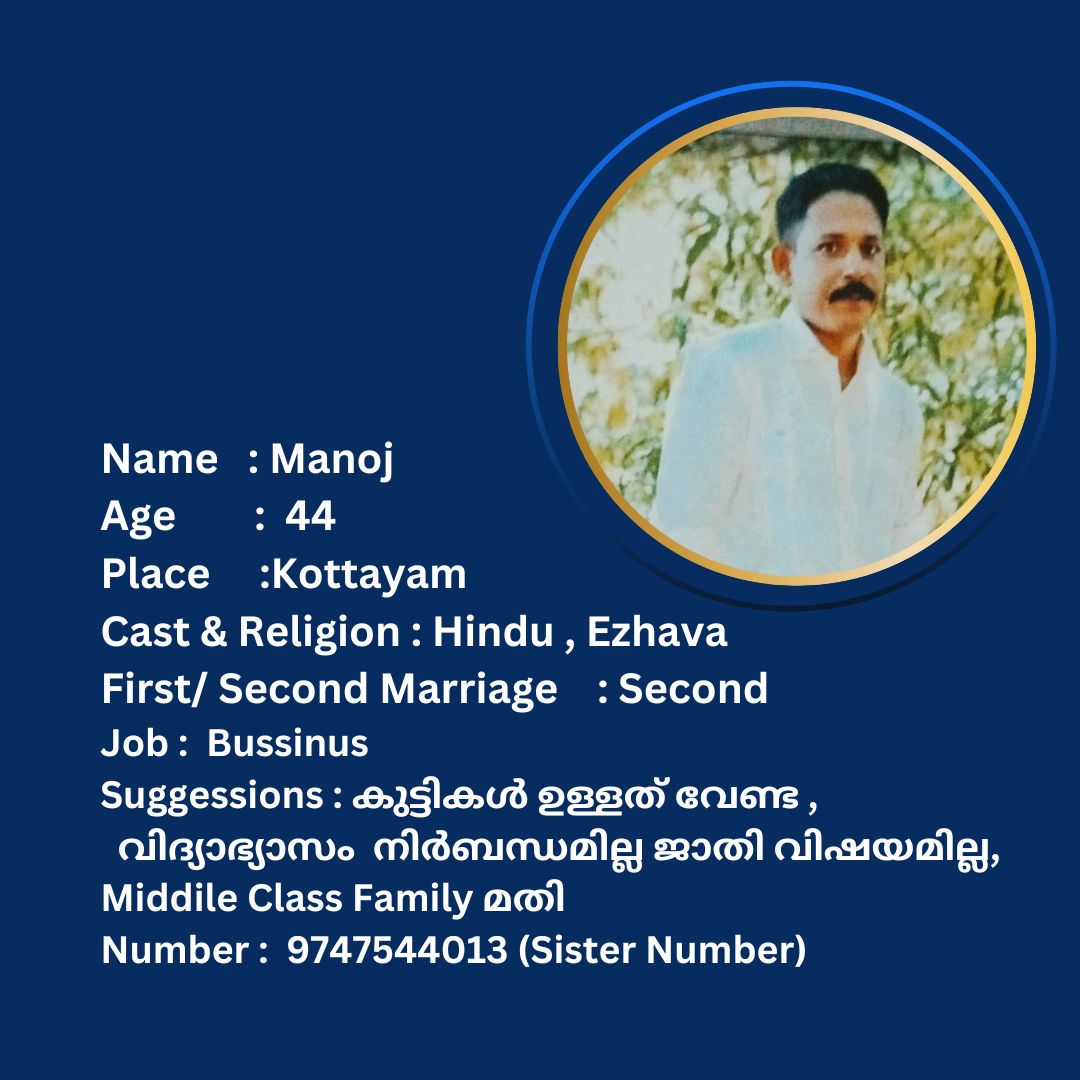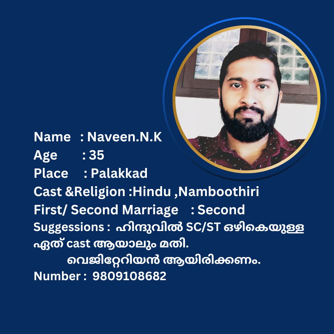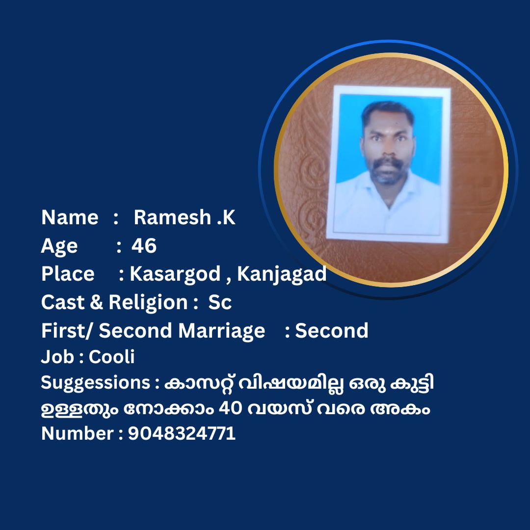 പുനർ വിവാഹം ചെയ്യാൻ താൽപര്യപ്പെടുന്ന നിങ്ങൾക്ക് അനിയോജ്യമായ വധുവിനെ കണ്ടത്താം .