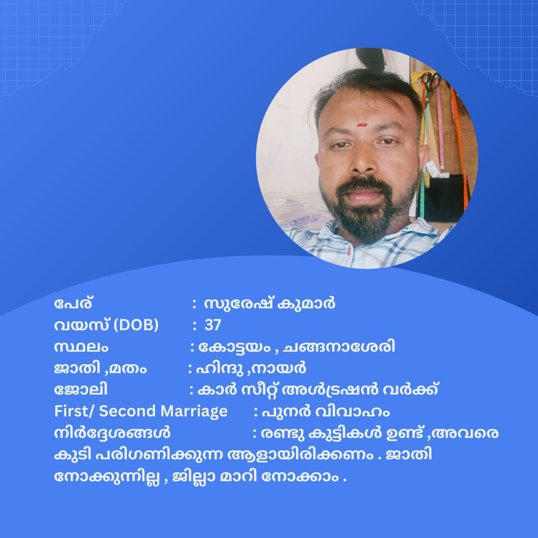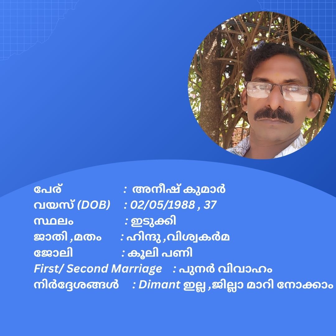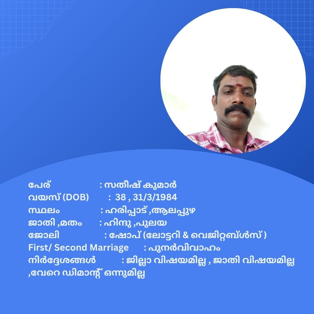 പുനർ വിവാഹം ചെയ്യാൻ താൽപര്യപ്പെടുന്ന നിങ്ങൾക്ക് അനിയോജ്യമായ വധുവിനെ കണ്ടത്താം .
