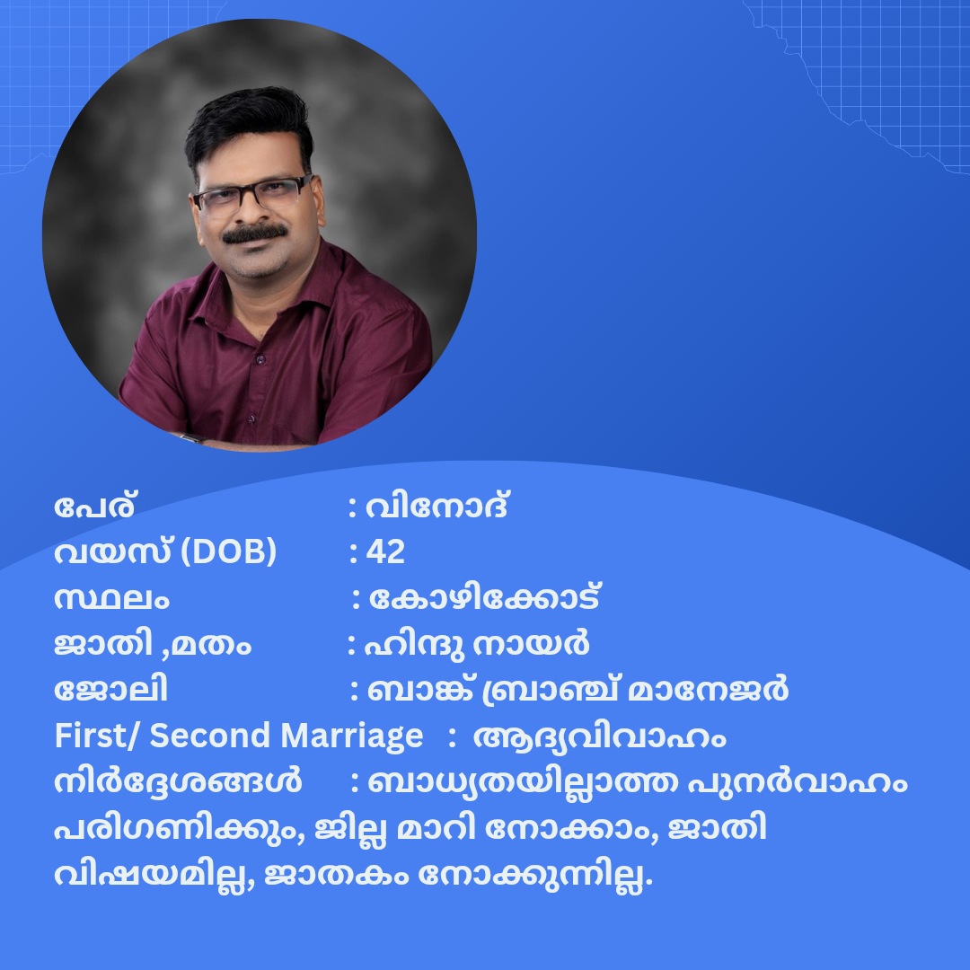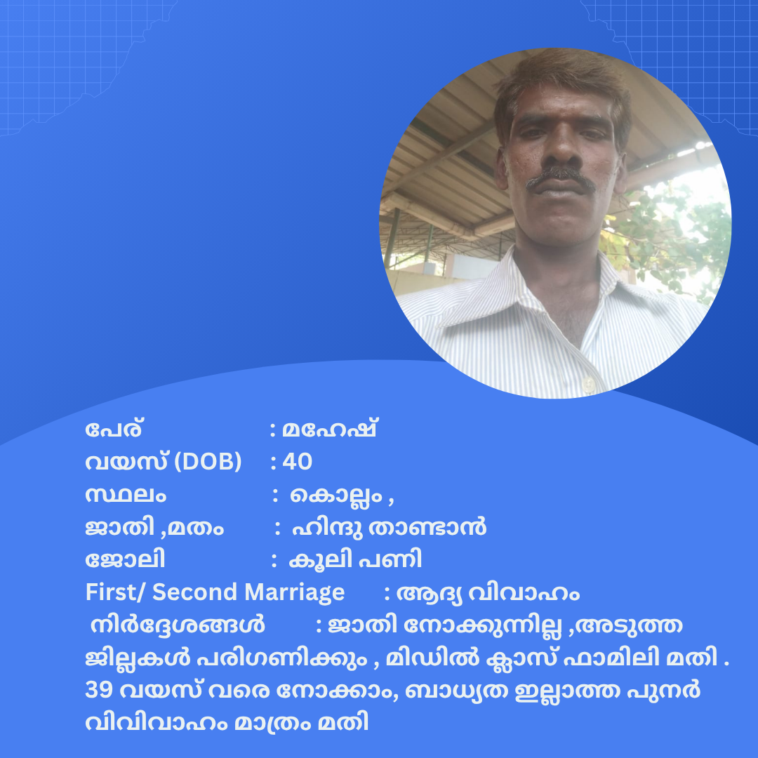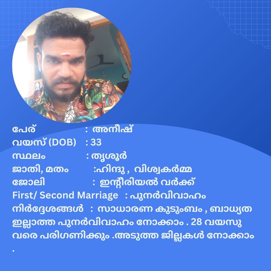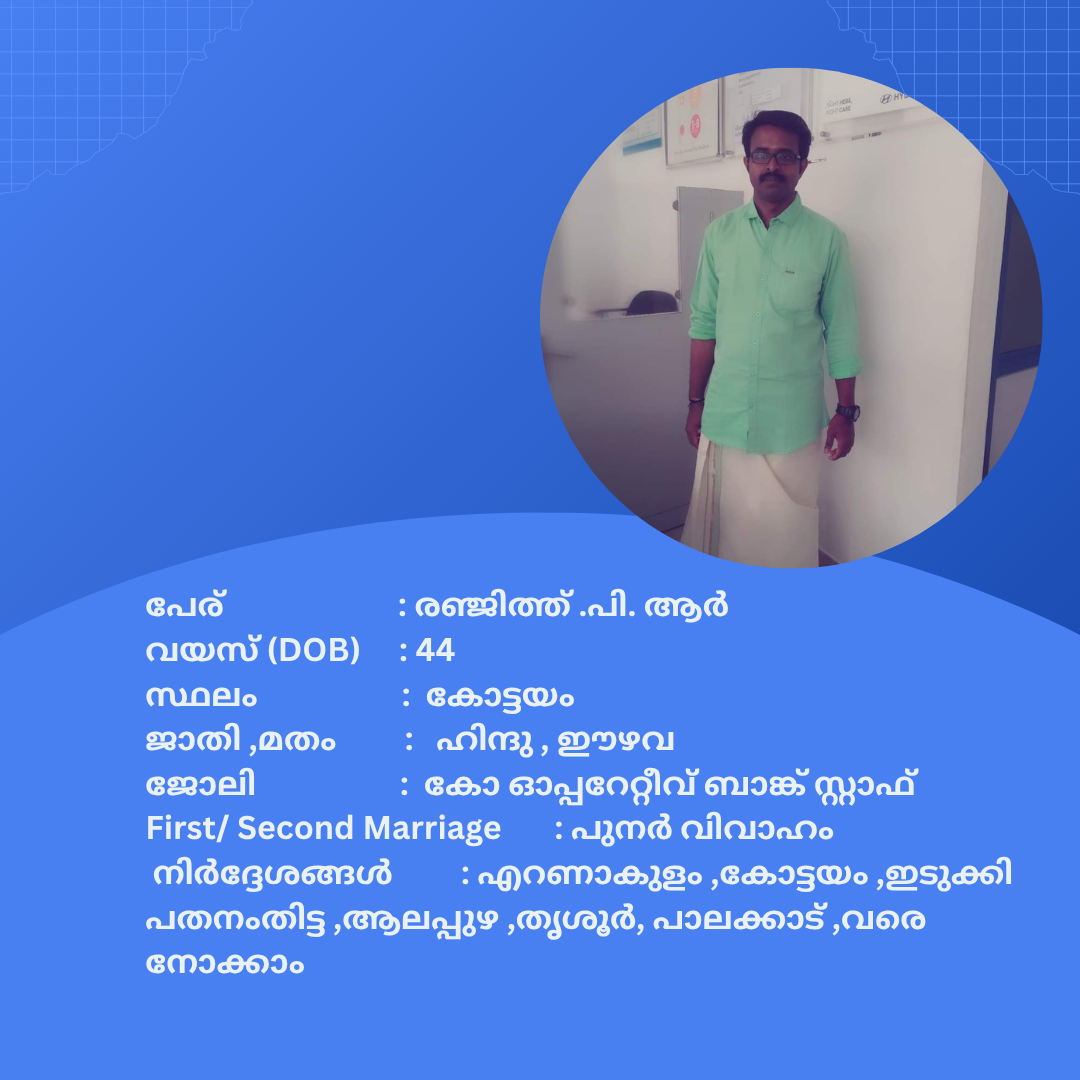 പുനർ വിവാഹം ചെയ്യാൻ താൽപര്യപ്പെടുന്ന നിങ്ങൾക്ക് അനിയോജ്യമായ വധുവിനെ കണ്ടത്താം .