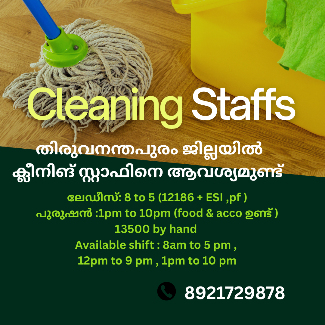 🚨🚨🚨🚨🚨 ക്ലീനിങ് സ്റ്റാഫിനെ ആവശ്യമുണ്ട്.