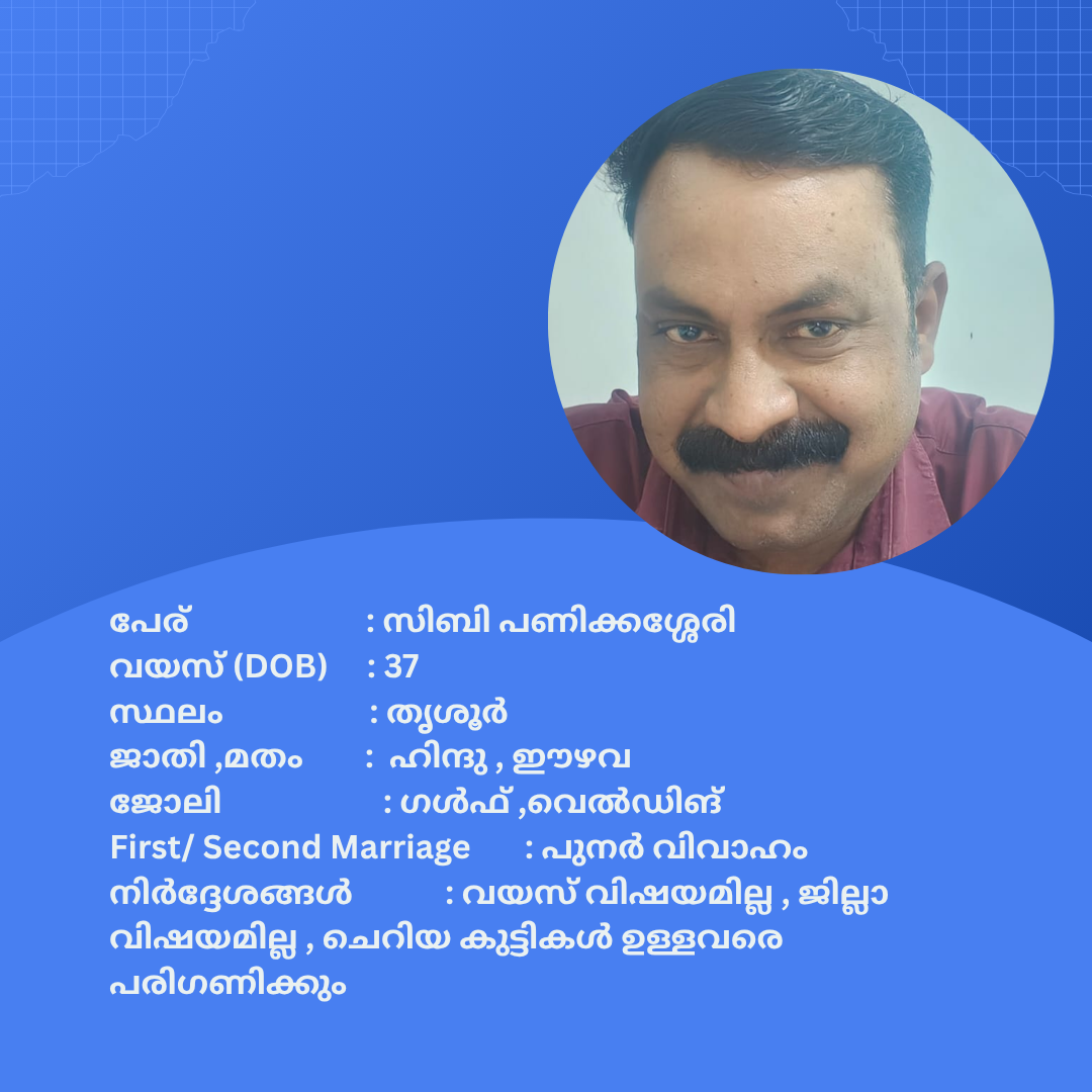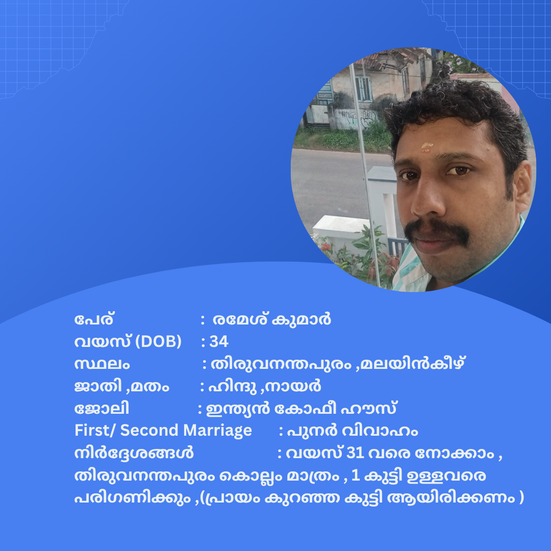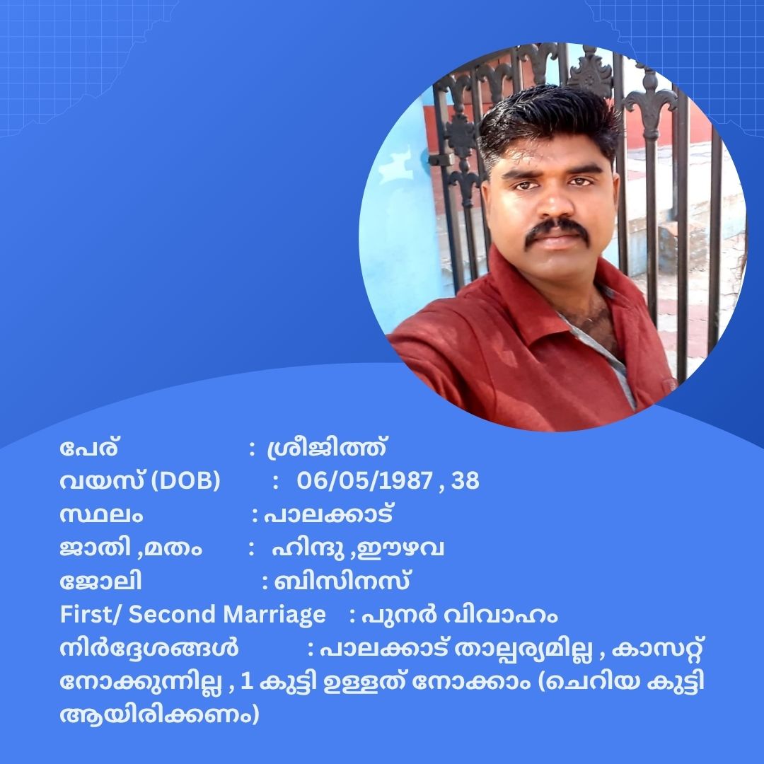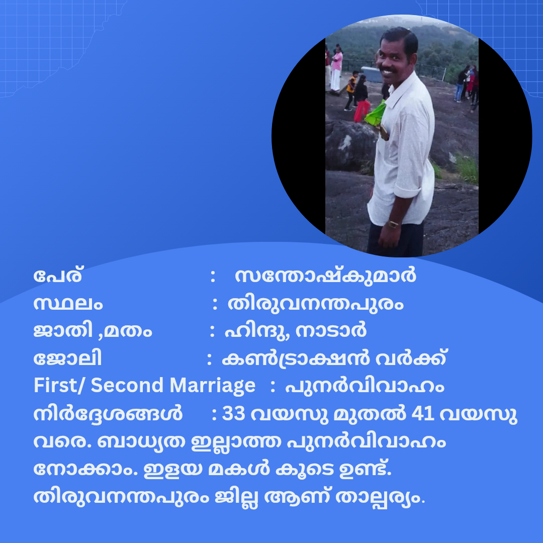 പുനർ വിവാഹം ചെയ്യാൻ താൽപര്യപ്പെടുന്ന നിങ്ങൾക്ക് അനിയോജ്യമായ വധുവിനെ കണ്ടത്താം .
