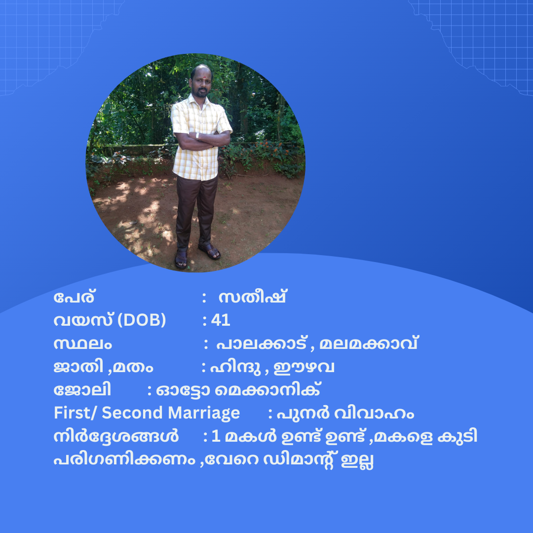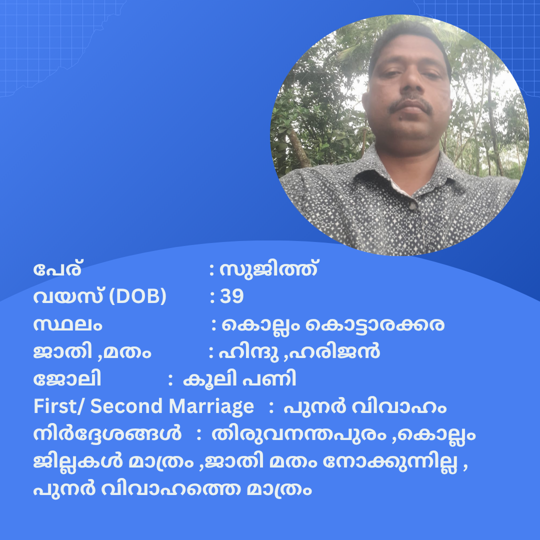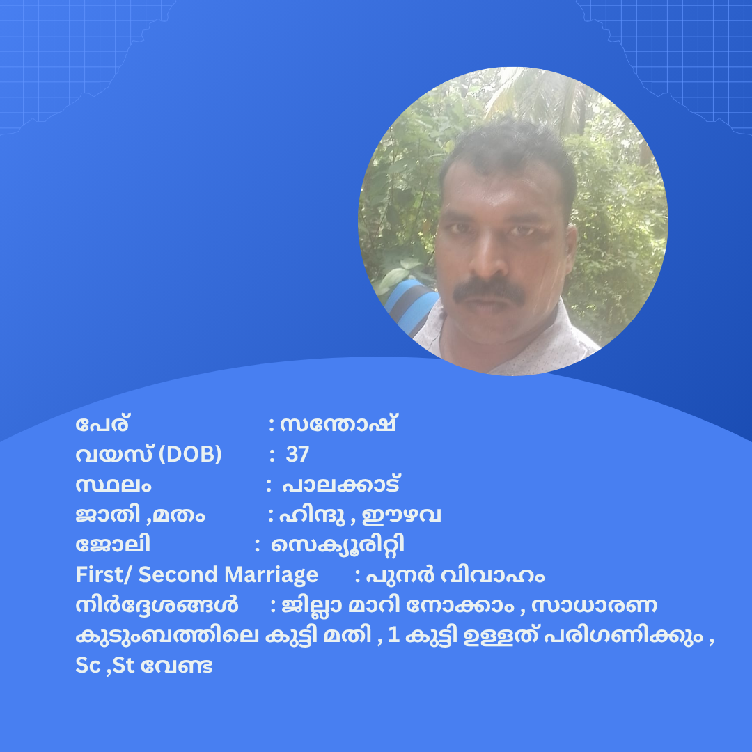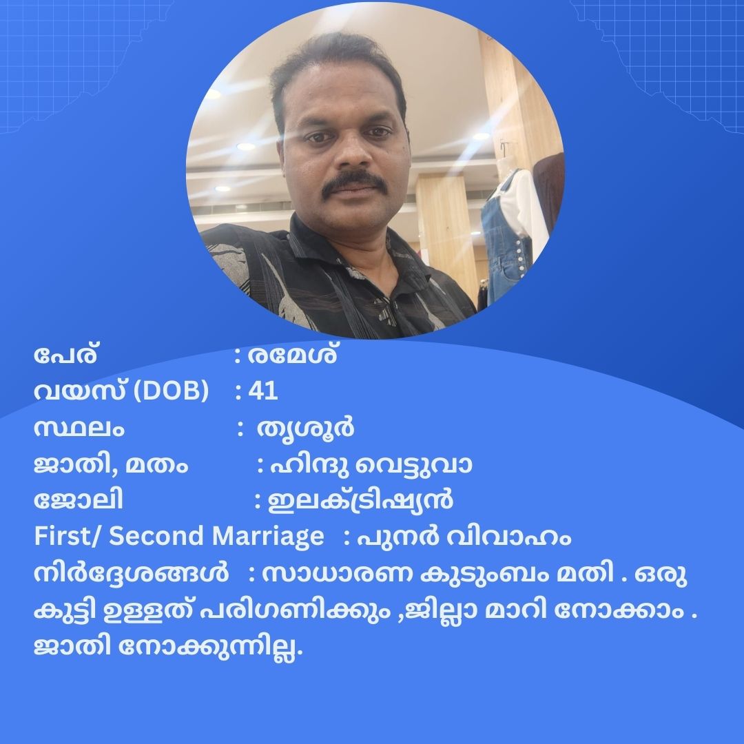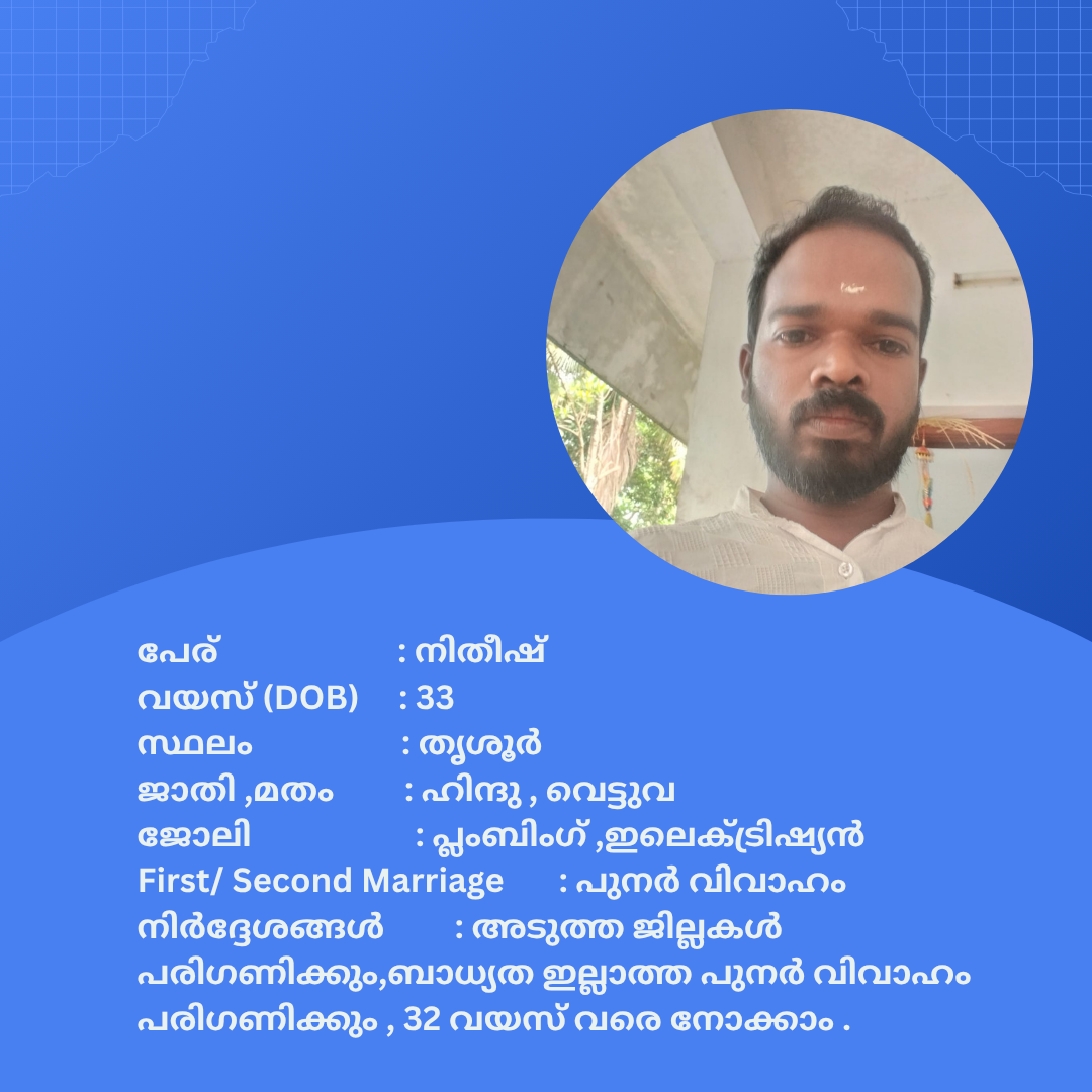 പുനർ വിവാഹം ചെയ്യാൻ താൽപര്യപ്പെടുന്ന നിങ്ങൾക്ക് അനിയോജ്യമായ വധുവിനെ കണ്ടത്താം .