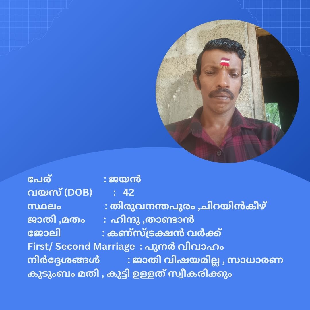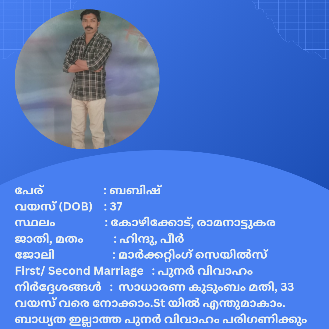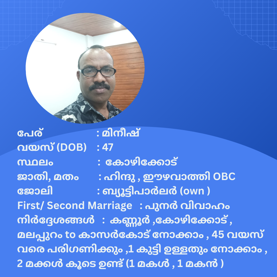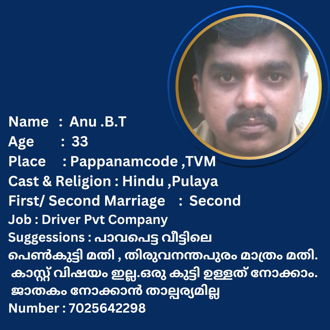 പുനർ വിവാഹം ചെയ്യാൻ താൽപര്യപ്പെടുന്ന നിങ്ങൾക്ക് അനിയോജ്യമായ വധുവിനെ കണ്ടത്താം .