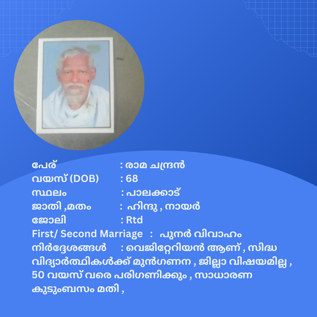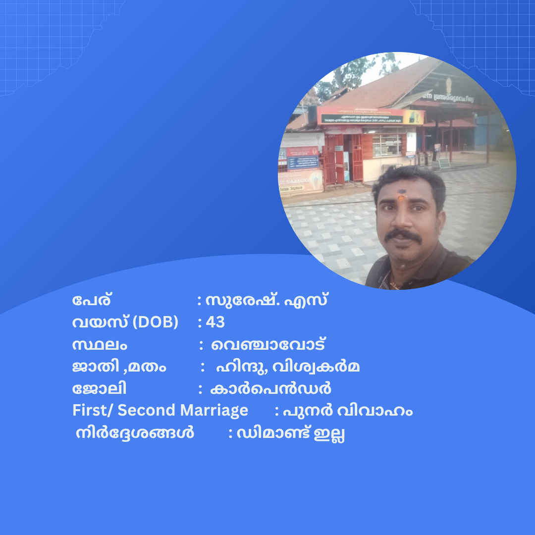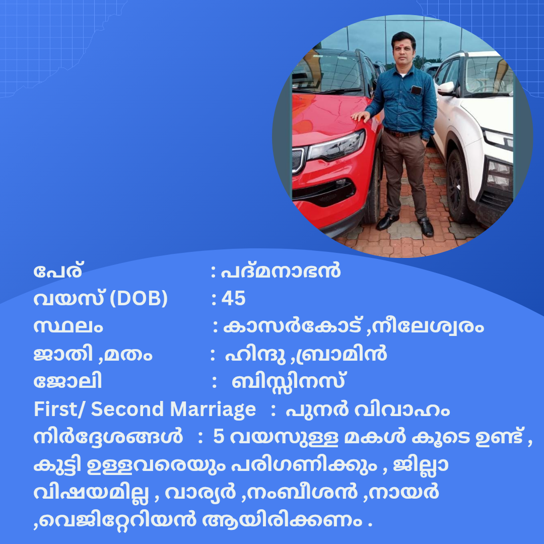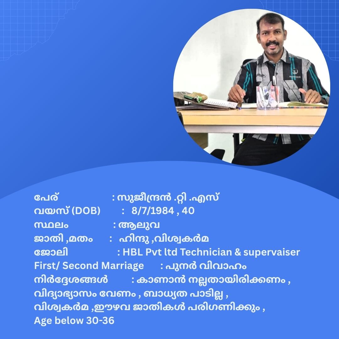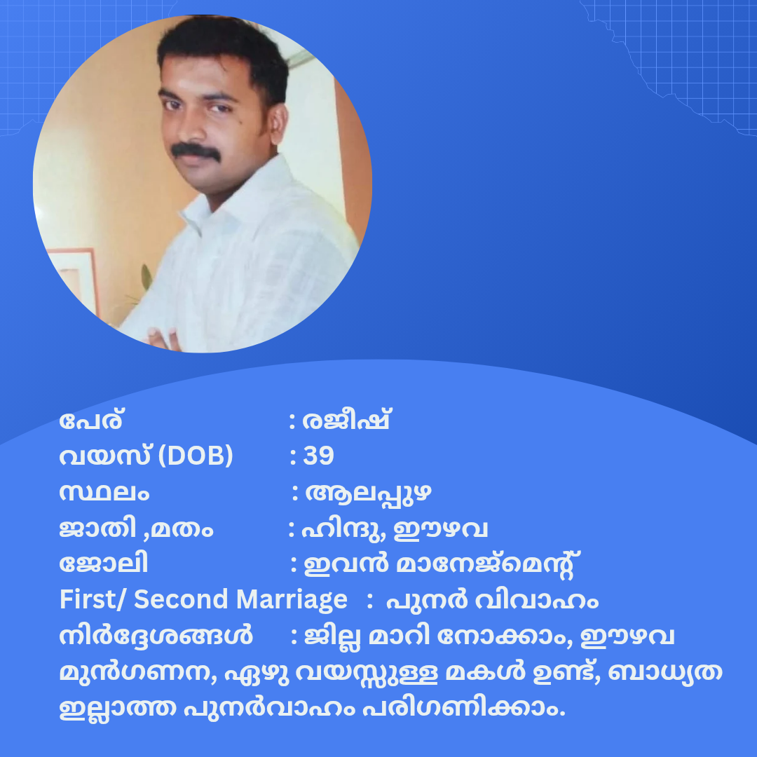 പുനർ വിവാഹം ചെയ്യാൻ താൽപര്യപ്പെടുന്ന നിങ്ങൾക്ക് അനിയോജ്യമായ വധുവിനെ കണ്ടത്താം .