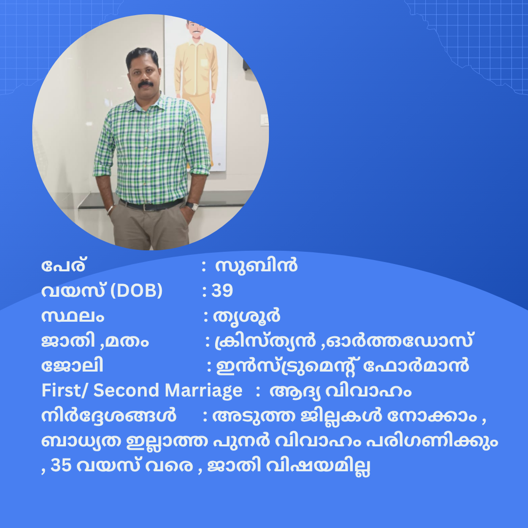 • ക്രിസ്ത്യൻ വധുവിനെ തേടുന്നു